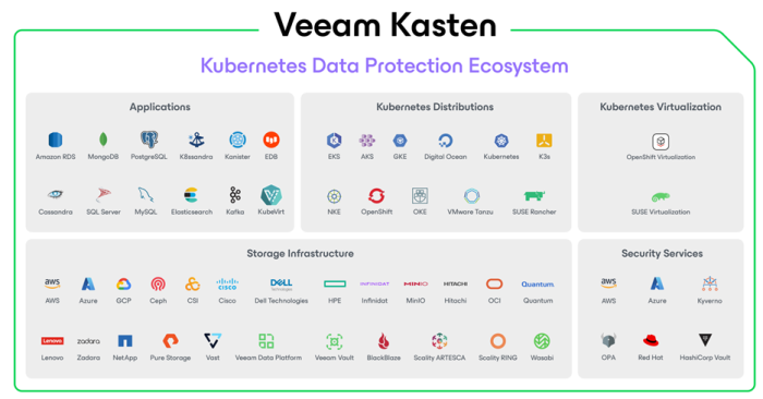 Veeam Kasten is the only Leader and Outperformer in the Kubernetes Data Protection market for the fifth year in a row, as tracked by GigaOm Radar. Our solution is trusted by banks, retailers, federal agencies, and public sector organizations, among many others, to protect both containers and KubeVirt VMs. These deployments reflect Veeam Kasten’s strong foundations in security, scale, and data freedom, all built in a Kubernetes-native manner and reinforced by deep technical integrations with partners like Red Hat, Microsoft, AWS, and SUSE.