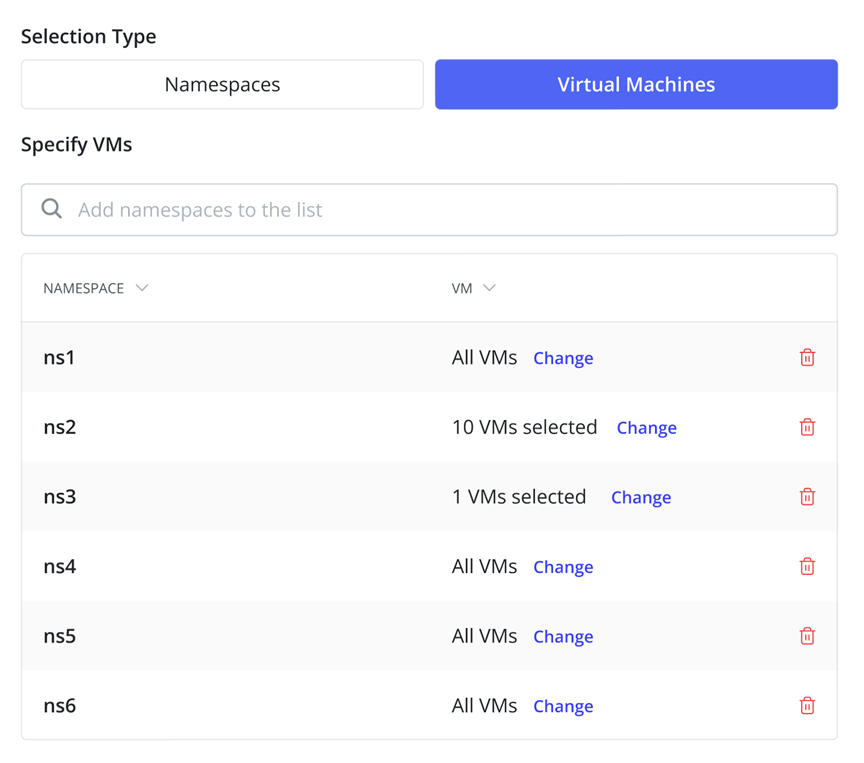 Veeam Kasten now lets you select entire namespaces or individual VMs for protection. It automatically identifies and protects all dependencies needed to restore each VM, with no manual labeling or filtering required. This means you can define backup policies for individual VMs, regardless of how your organization aligns VMs to namespaces. Separate actions and restore points are created for each VM, so a failure to export one VM doesn’t impact the rest.