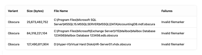 - Which files are already unrecoverable due to ransomware flaws — such as large files missing footers in Obscura’s case